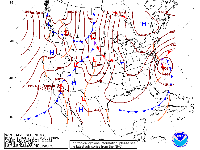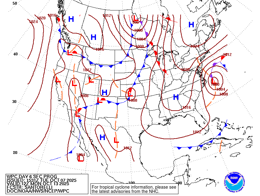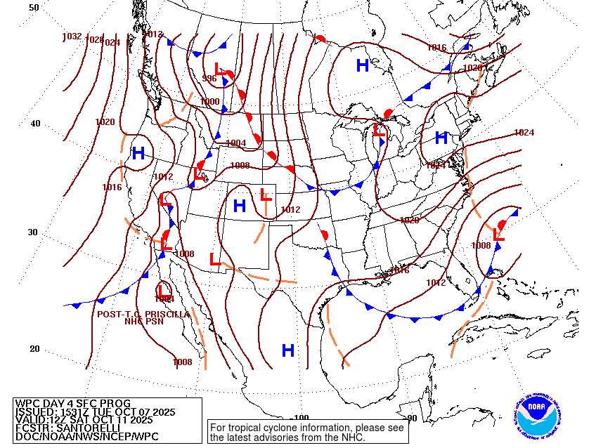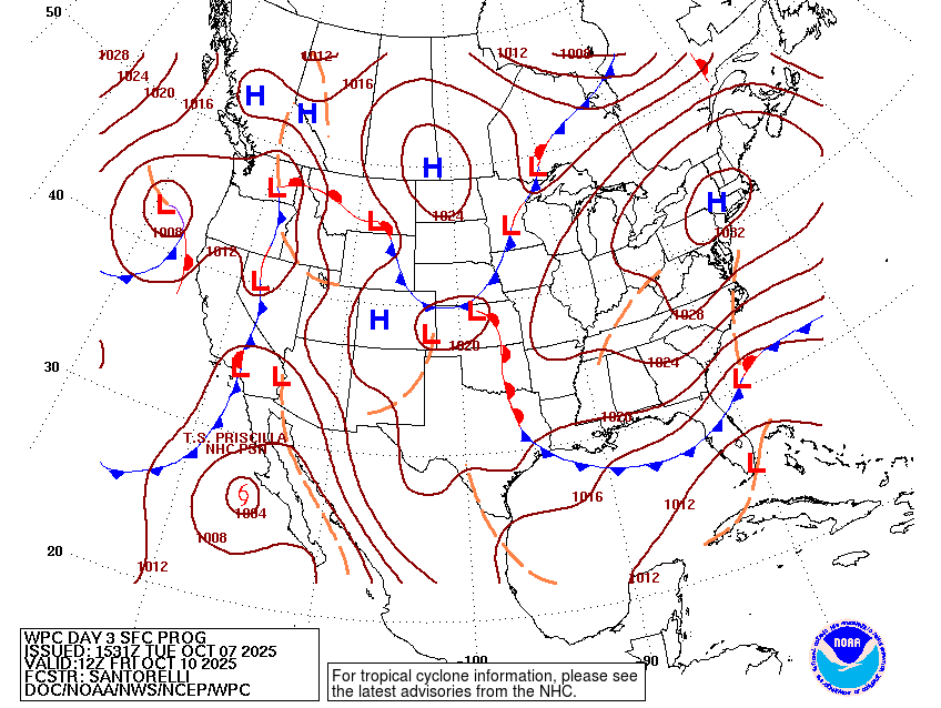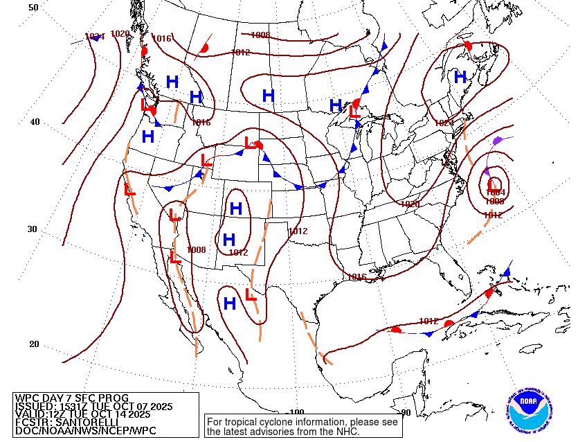 Each map BELOW shows where fronts, highs and lows are positioned 7 AM Central Time of the same day listed.